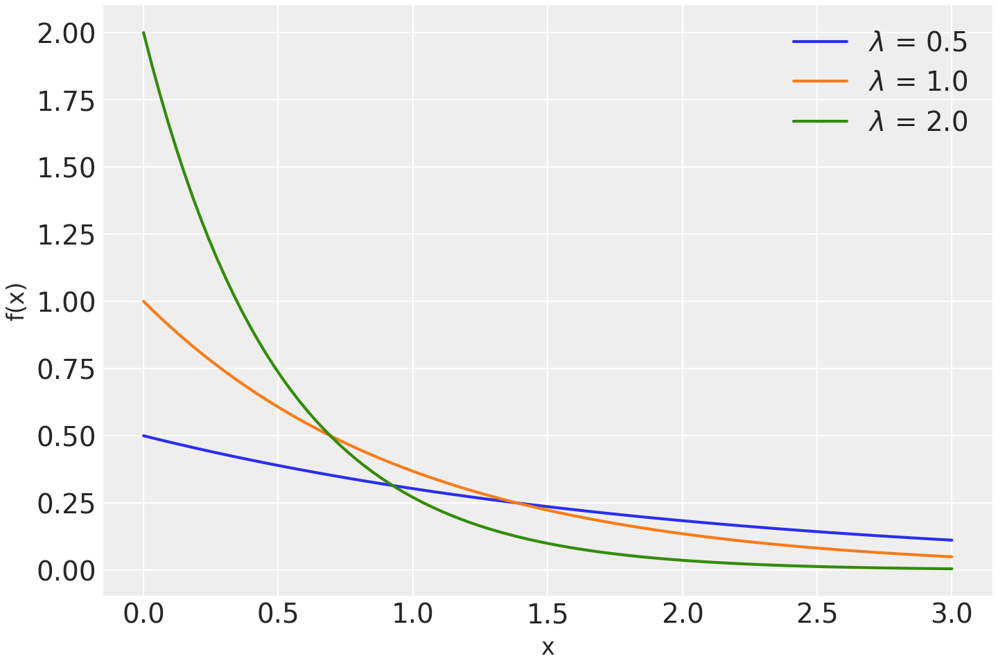 \[f(x \mid \lambda) = \lambda \exp\left\{ -\lambda x \right\}\]